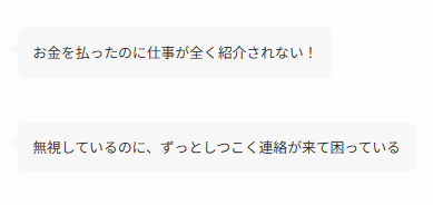 むしろ「お金を騙し取られた」や「連絡が途絶えた」といった被害報告が100パーセントを占めています。