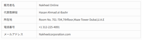 運営会社の住所はドバイですが、実際には「在ドバイ日本国総領事館」の場所を無断使用しています。